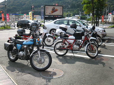 今回はのらさん、もん黄~さん、副隊長さんがwave125で、ヒデ様がCT110改で、オネツさんがCL250で、自分はドリーム50改で、と、速いバイクばっか。