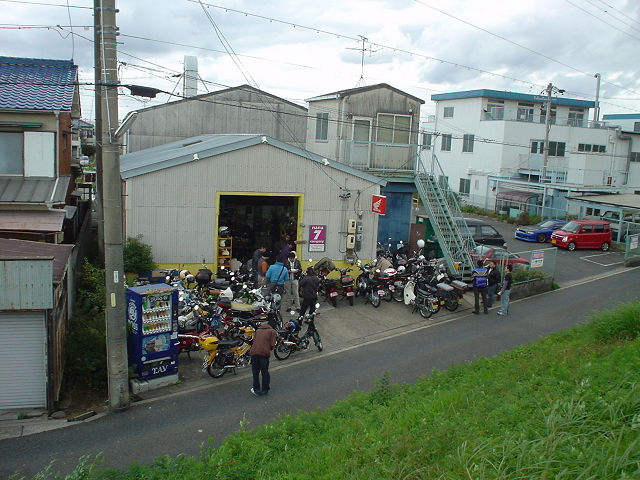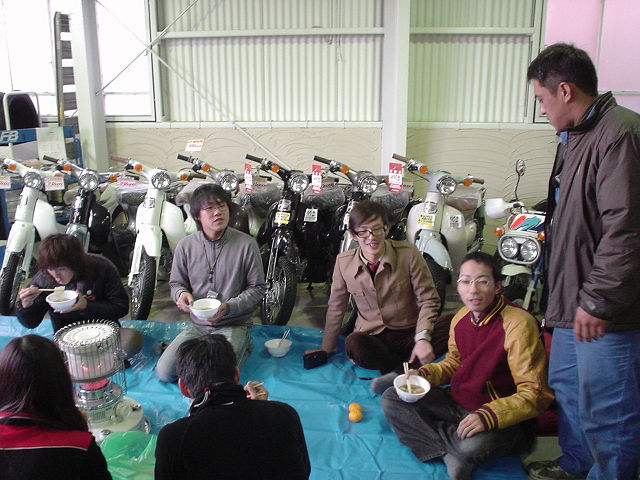 普段はバイク並べてあるスペースも今日はおくつろぎスペースになっていまして、みんなそこで団欒。