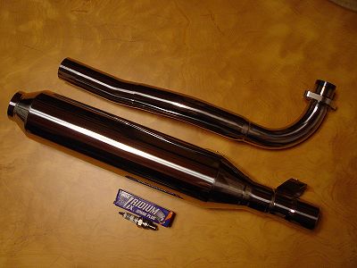 エキパイサイレンサー側。途中二重管になってるのが見えます、一応。