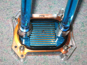 こんなのがCPUの熱交換器になって、超精密電子部品の塊の中に導水構造が設置されます。