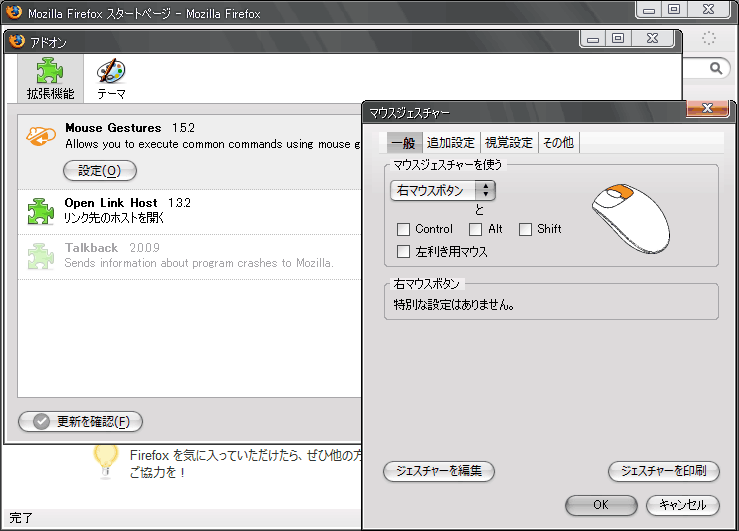 アドオンのプラグインツールで、マウスジェスチャが可能になるんですと!