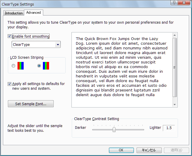 ClearTypeTunerとか使ってみたら、液晶1ドット中のRGBの位置を普段とは逆転させるとかなーりマシでないの。